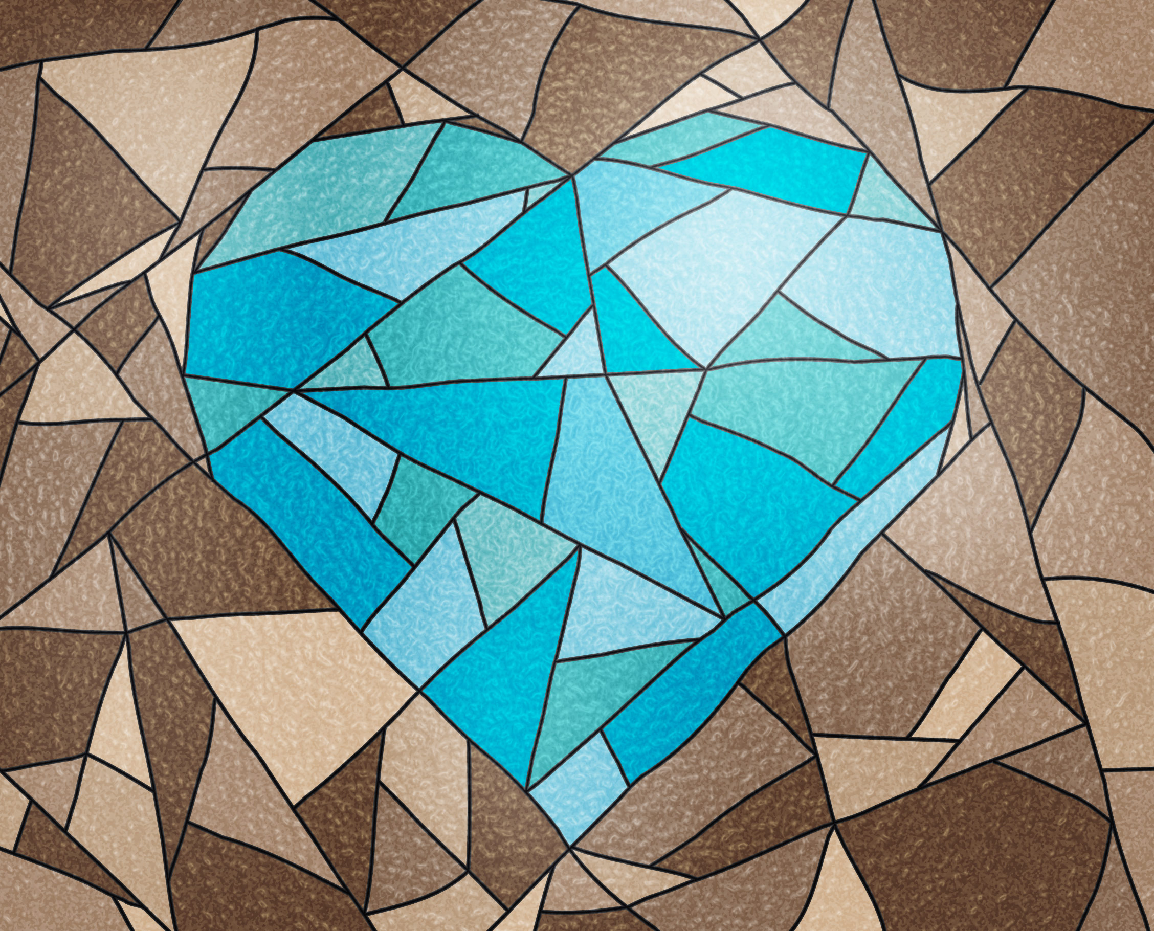 One of my favorite color combinations, browns and blues, make up this mock stained glass design of a heart with a light source behind it.