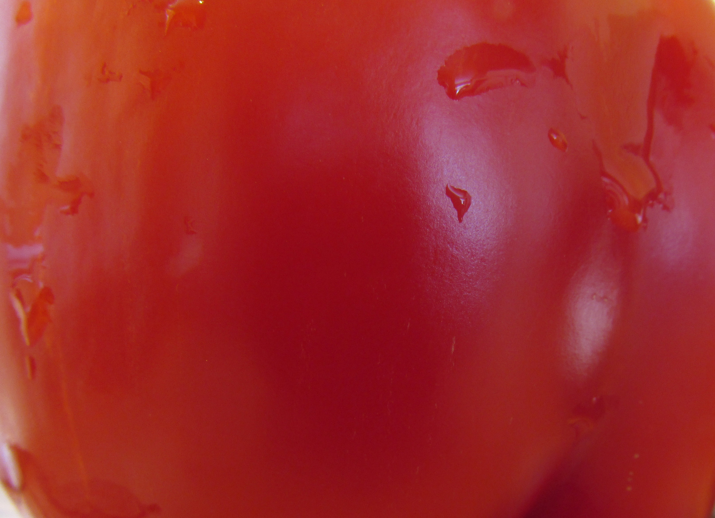 Close up picture of a red pepper skin that had been recently washed and rinsed.