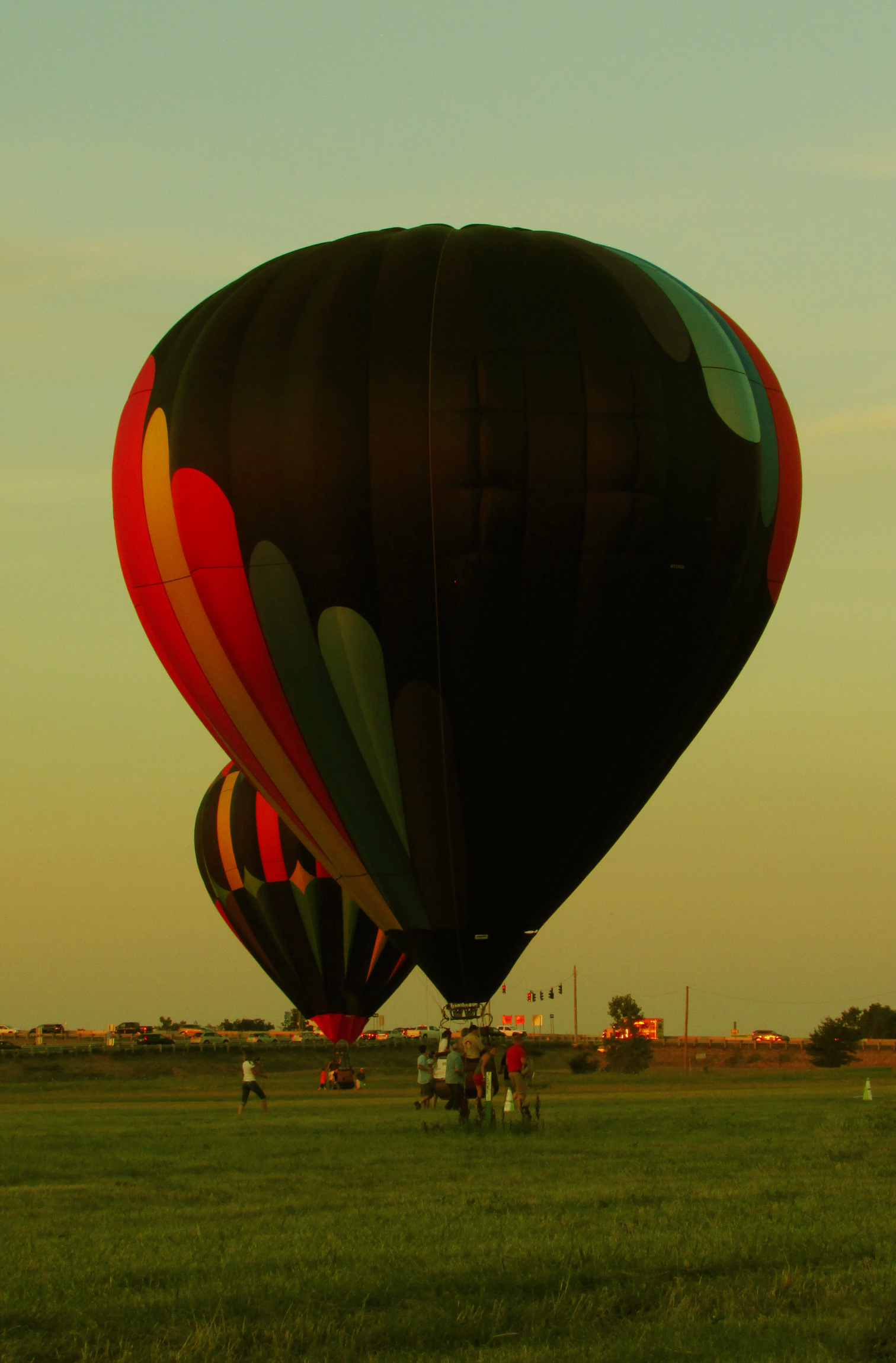 air balloon color dusk grass hot sky summer sunset warm