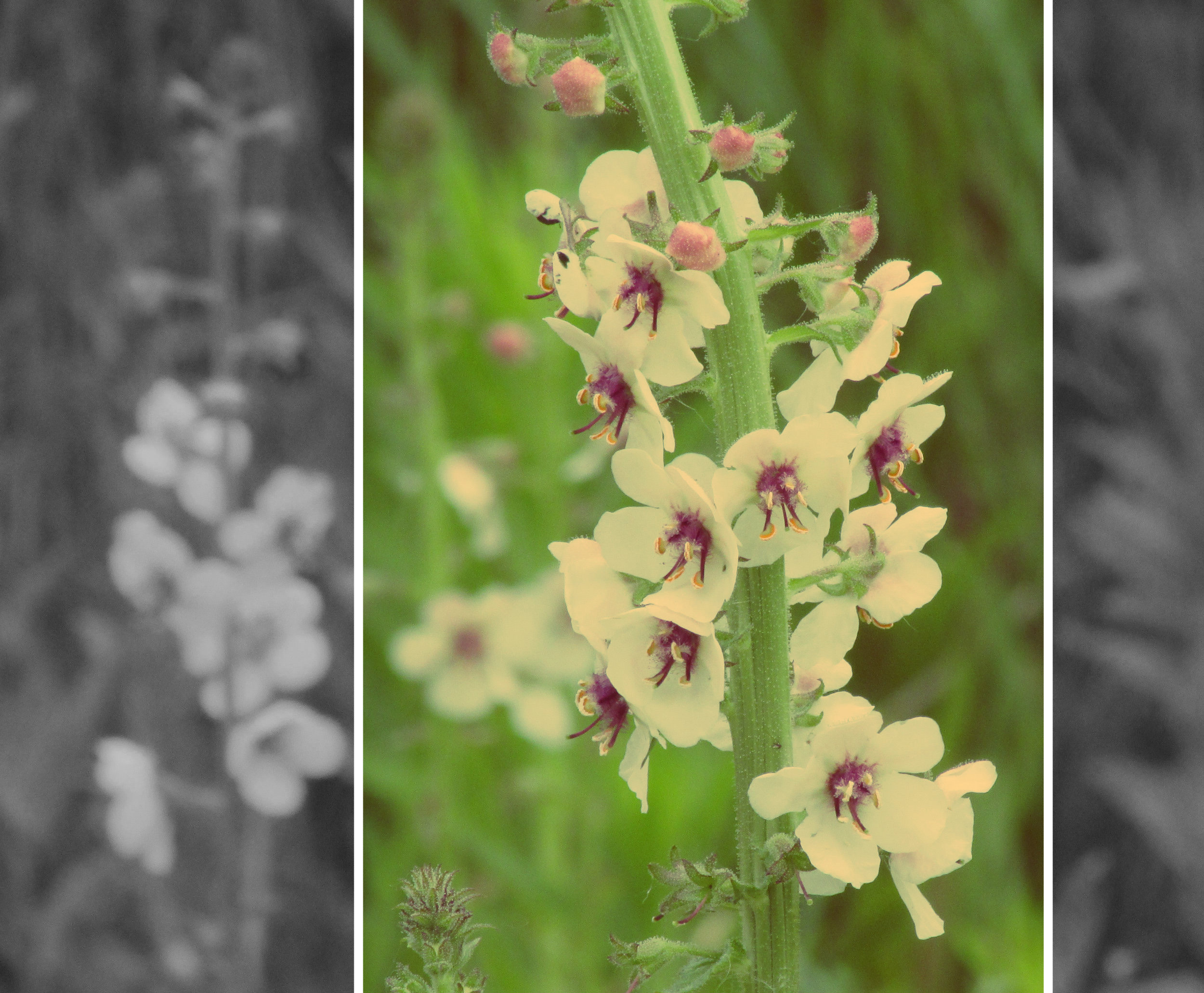 A picture of a flowering weed with a monochromatic border along the left and right to give this image additional interest.