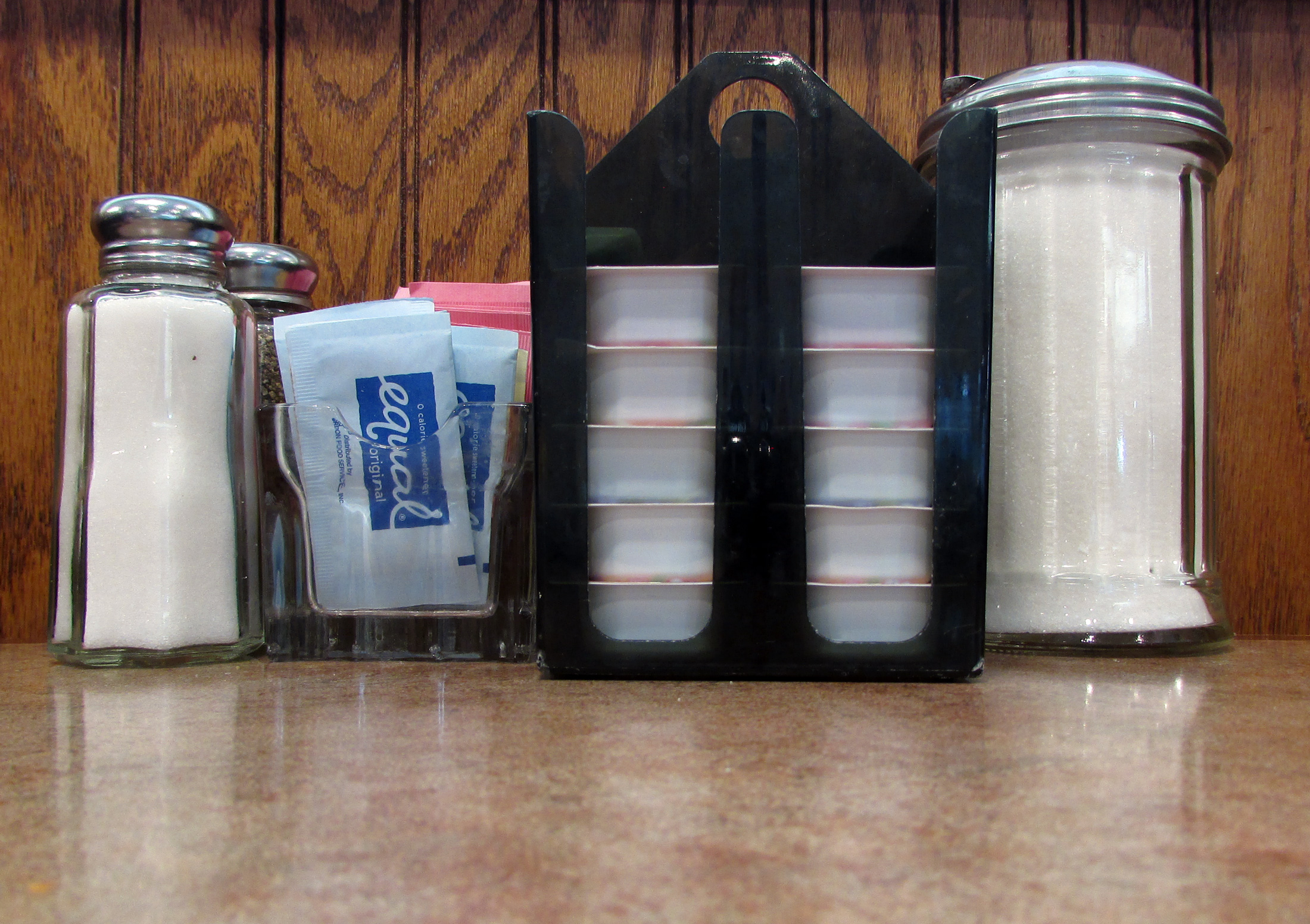 Home / Content / Picture of salt, pepper, sugar and jams on a diner table