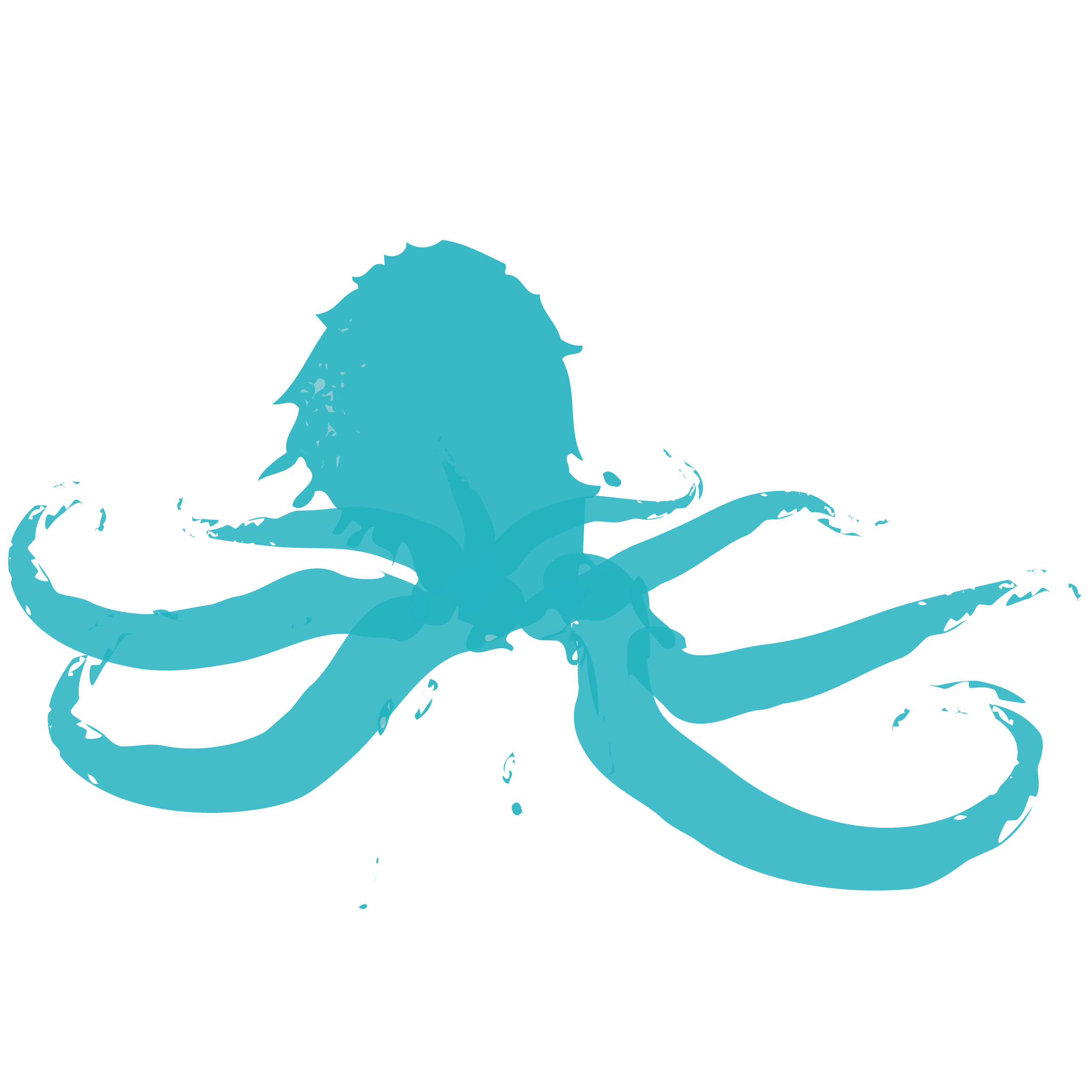 A blue transparent abstract octopus illustration on a transparent background so you can fit it into your design layouts easily.