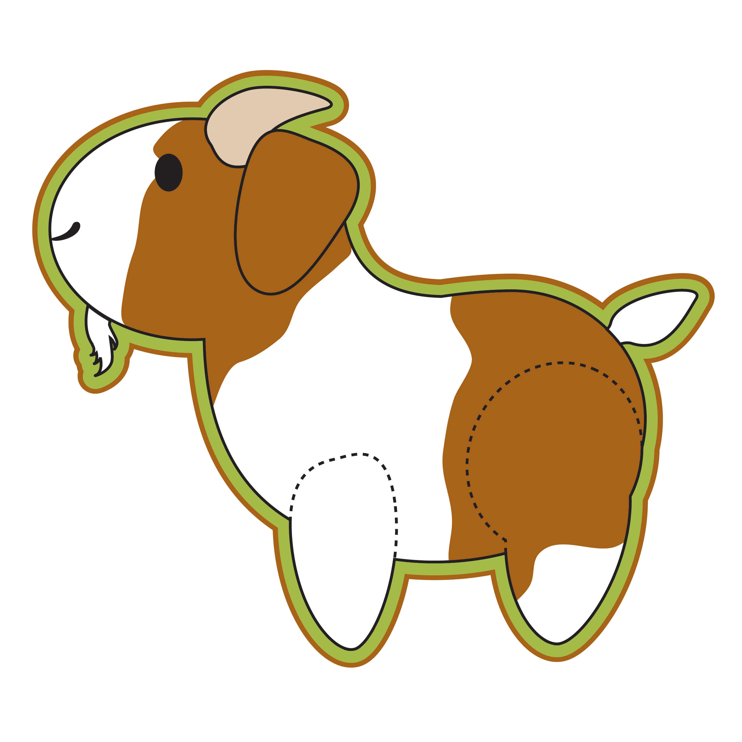A baby goat illustration on a white background with green and brown outlines. This cute image works for kids designs and other fun projects and layouts.