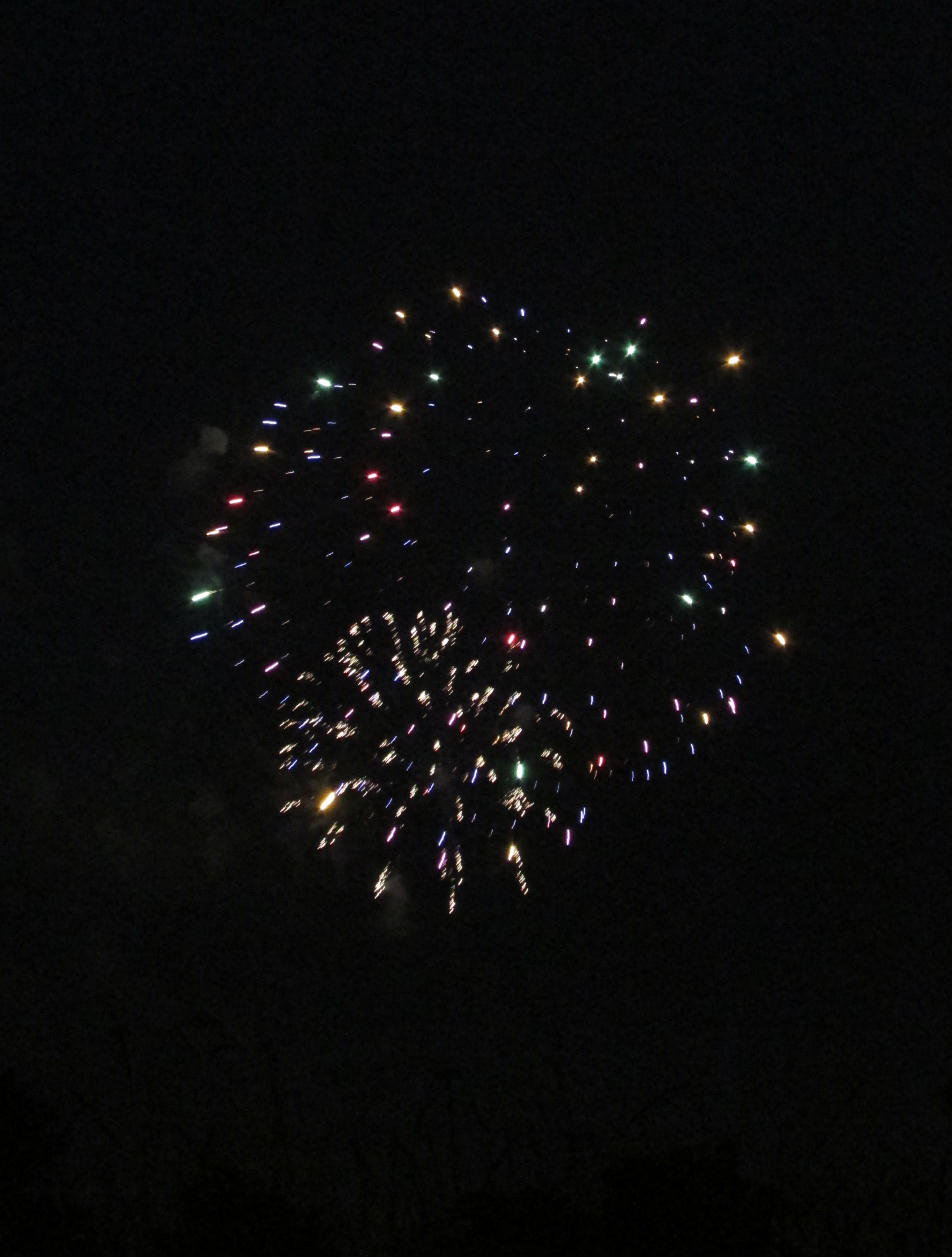 Photo taken during the 4th of july of fireworks in the sky at night.