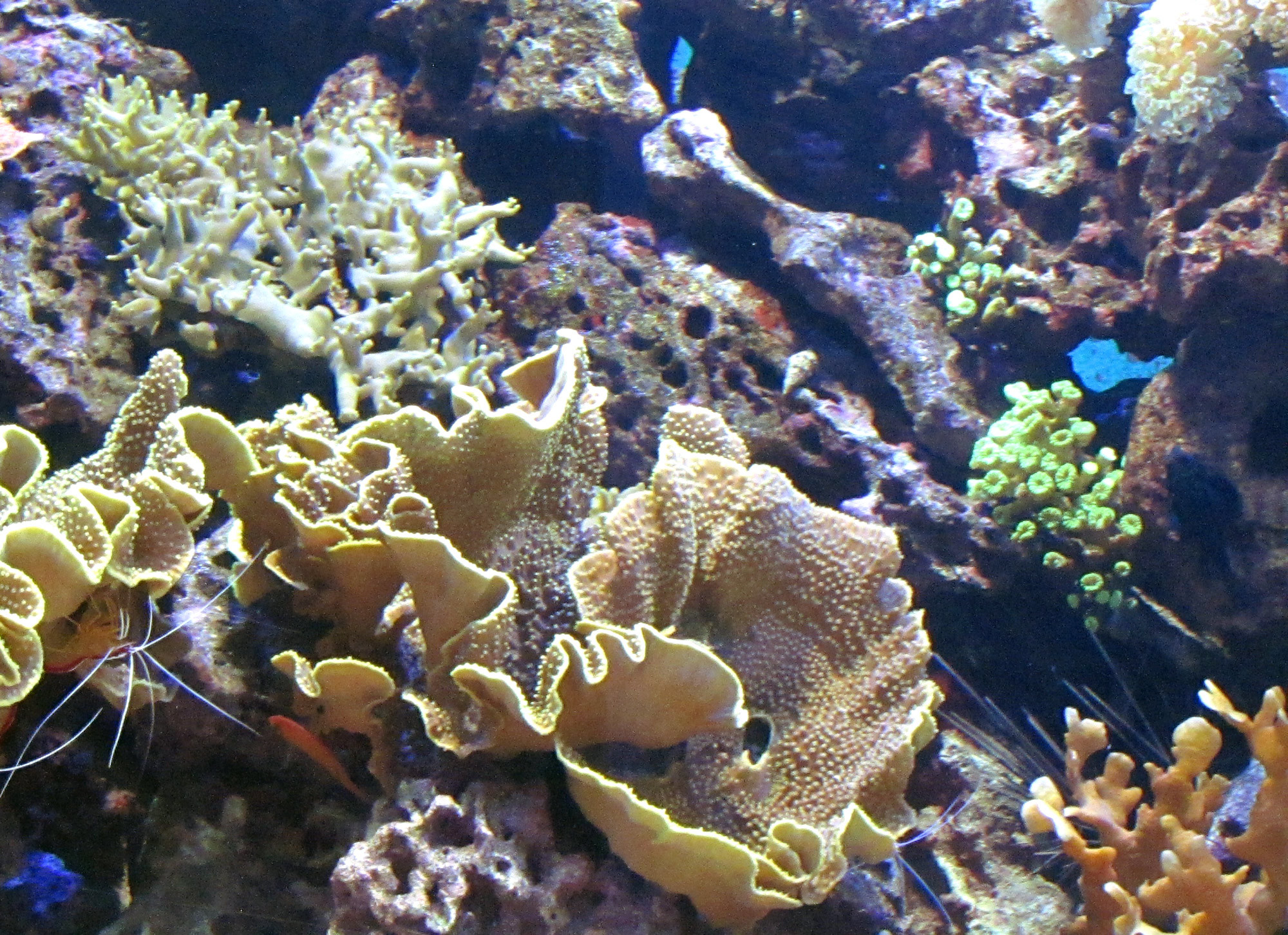 Picture of an underwater landscape with sea life aquatic plants. This picture was taken at the zoo aquairium.