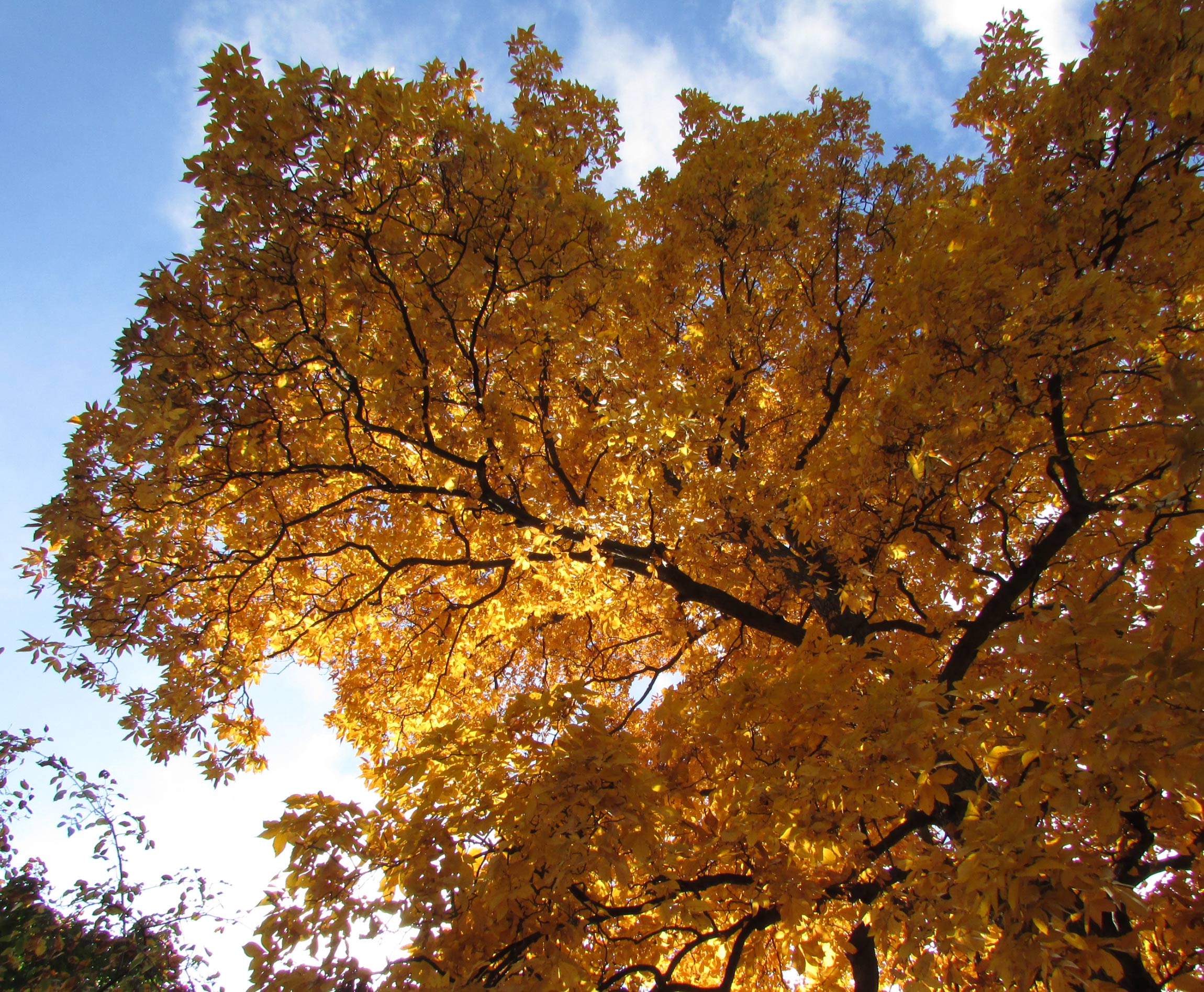 picture looking up at a tree as the sun peeks through the golden autumn leaves. This image was taken on my way to work and is still one of my favorite pictures.