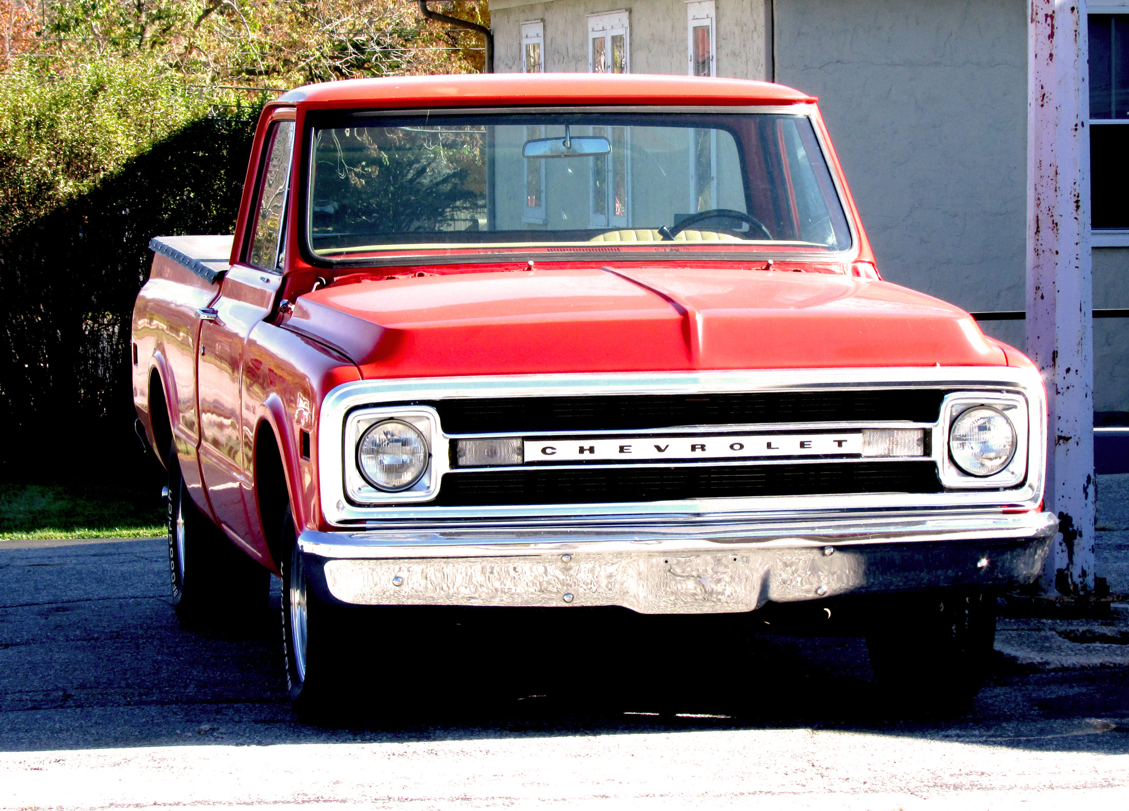 Home / Tags / transportation / Content / Old red Chevrolet truck in a parkinglot