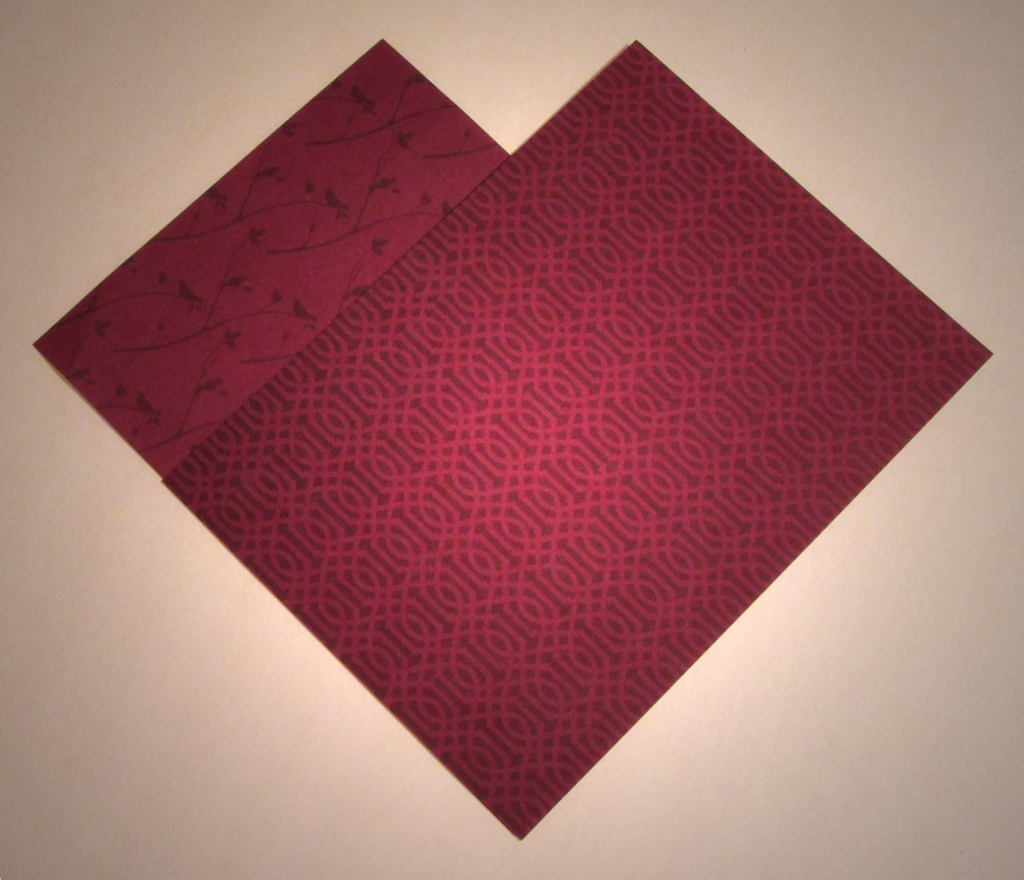 A picture of scrapbook paper in the shape of a heart. The paper is has deep pink colors and patterns on it. Perfect for a valentines day photo or background.