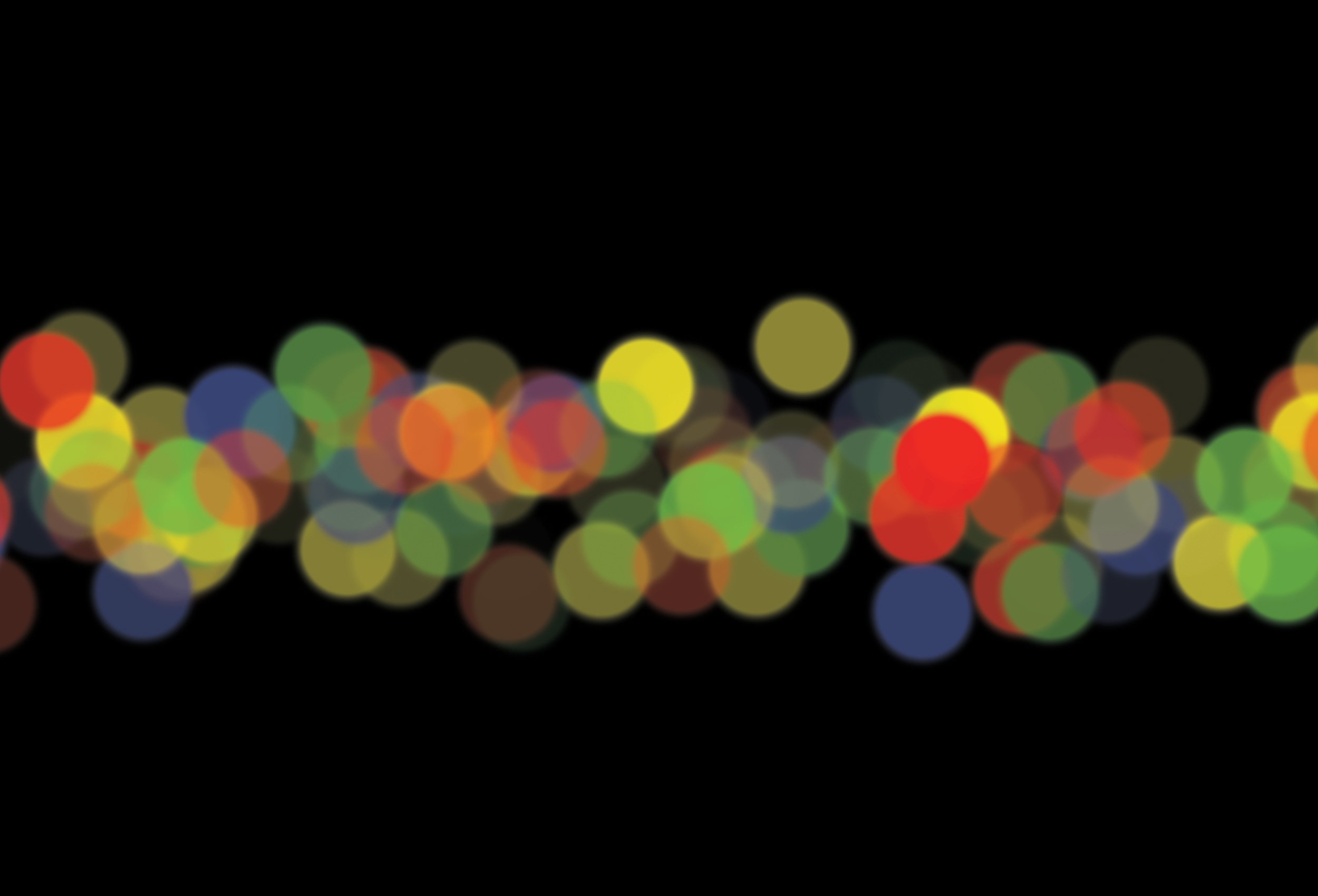 A colorful stream yellow, red, blue and green bubble effect background on black. Reminiscent of holiday lights, traffic lights or city lights.