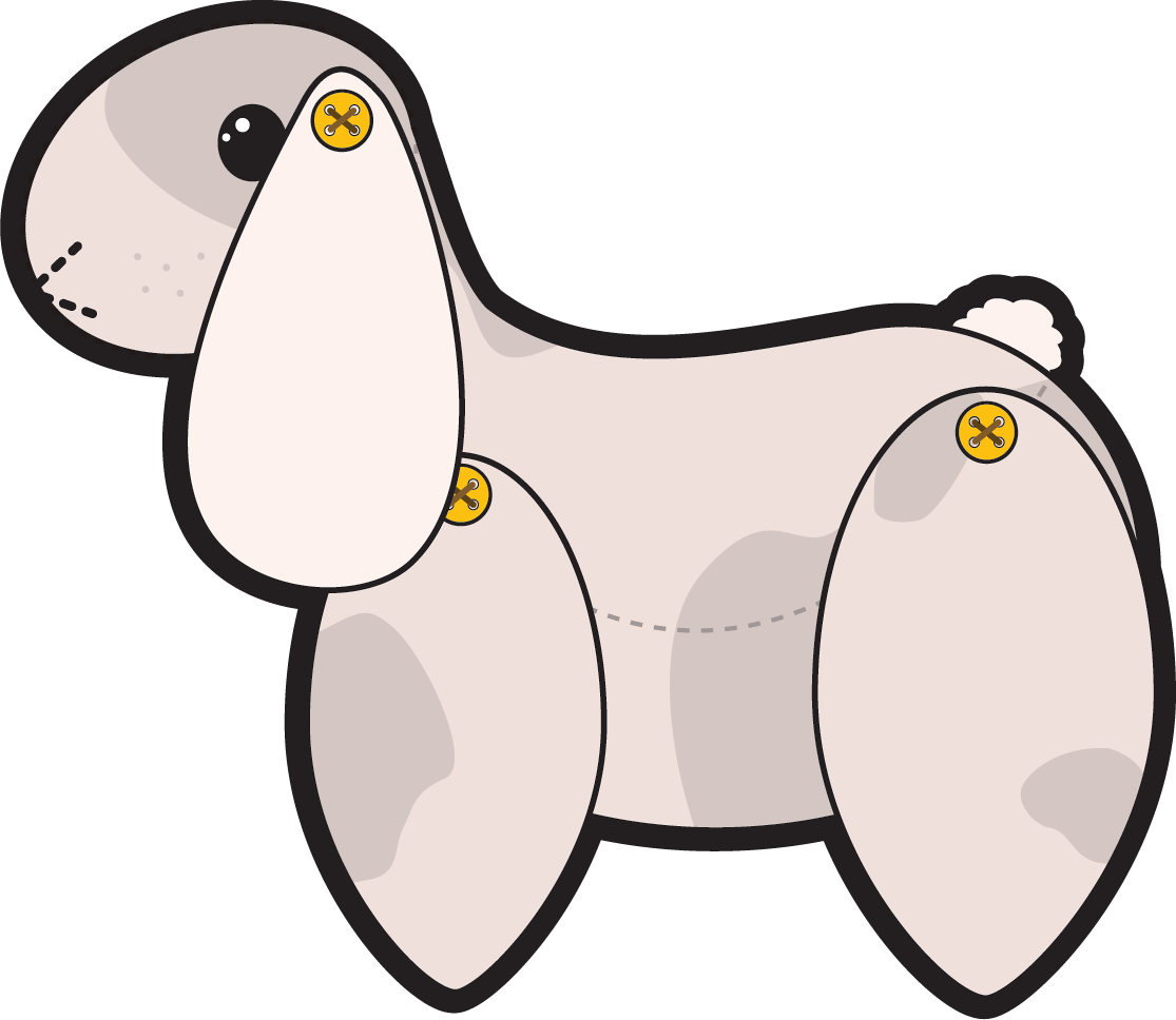 A transparent image of a stuffed bunny clipart illustration with buttons holding on the ears and legs. This adorable image can be used as a stock photo for your personal, commercial or educational design projects.
