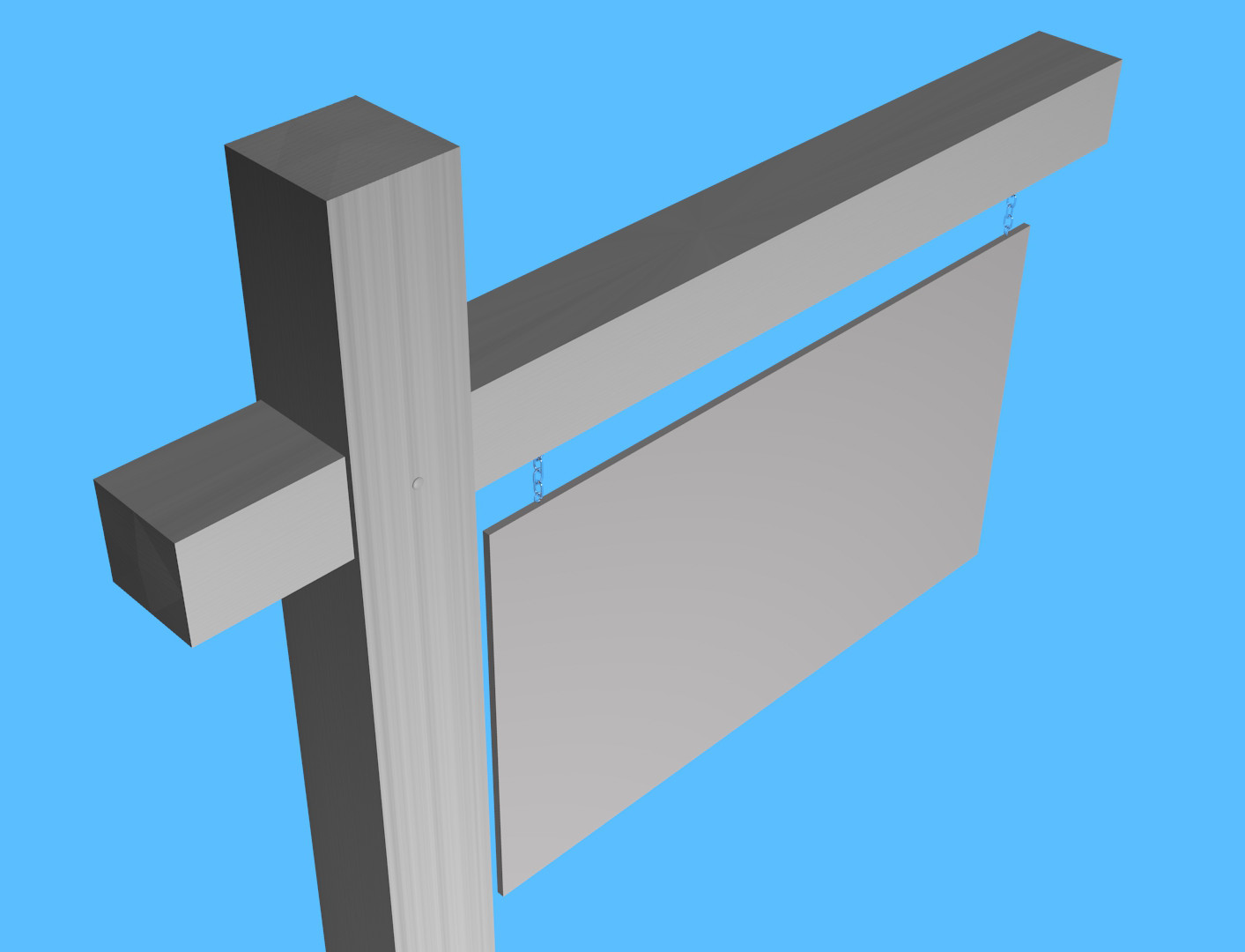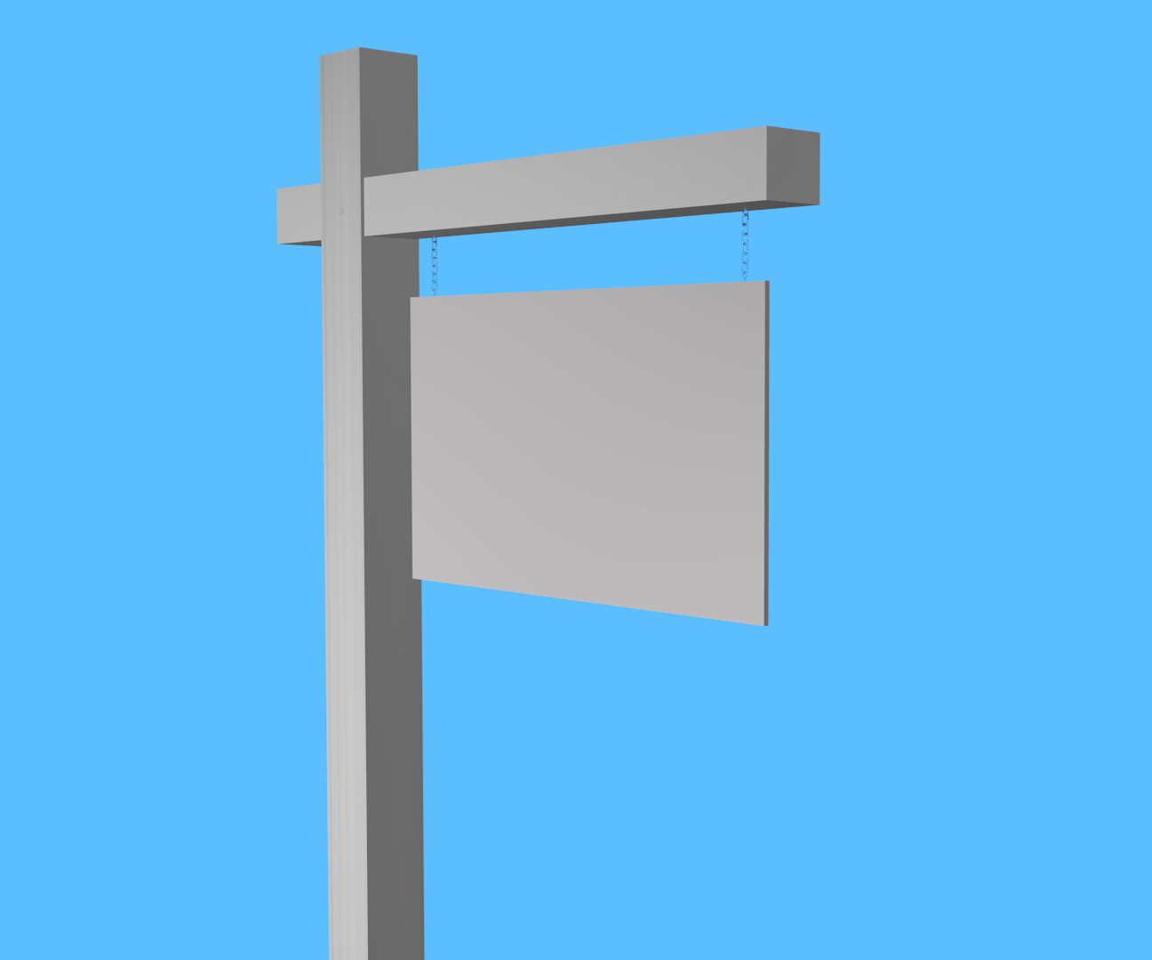 Render of a forward facing yard sign that is typical of a 'for sale' sign or real estate sign image.